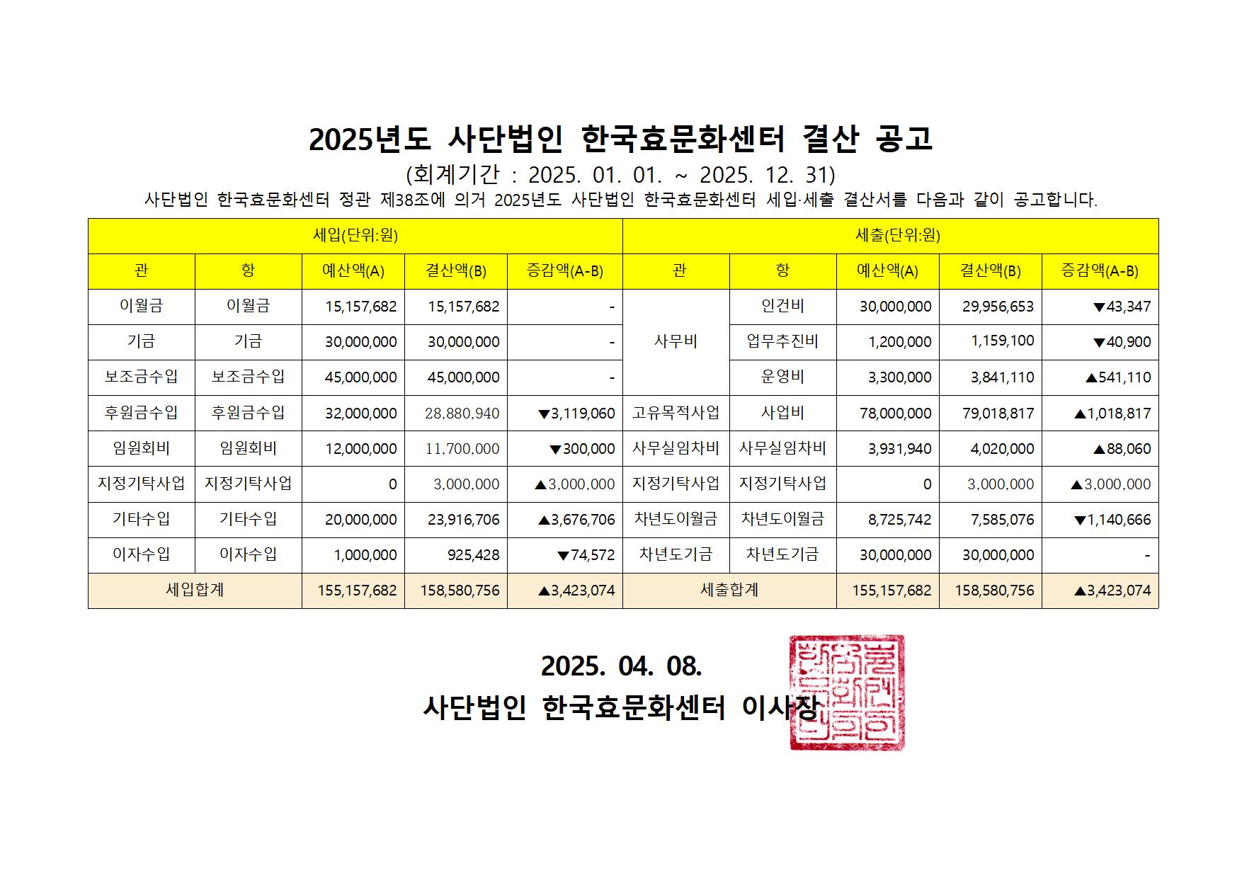 2024³âµµ °á»ê¼ ¹× ±âºÎ±Ý ¸ð±Ý¾×, Ȱ¿ë½ÇÀû¸í¼¼