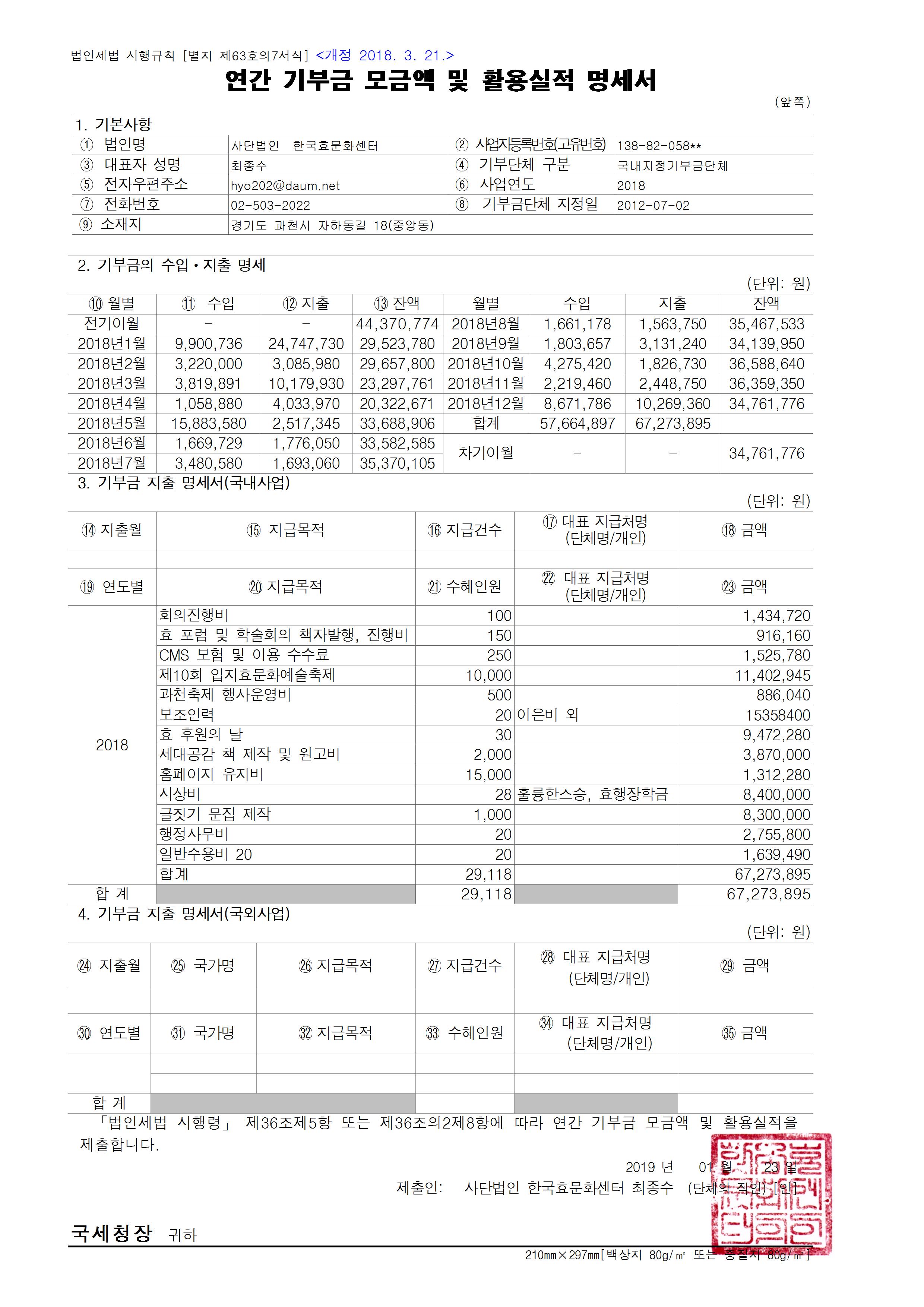 2018³âµµ °á»ê¼ ¹× ±âºÎ±Ý Ȱ¿ë ½ÇÀû º¸°í