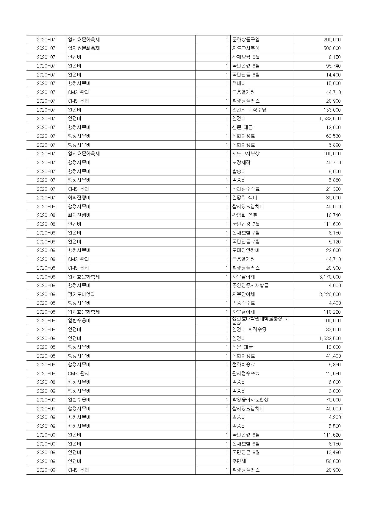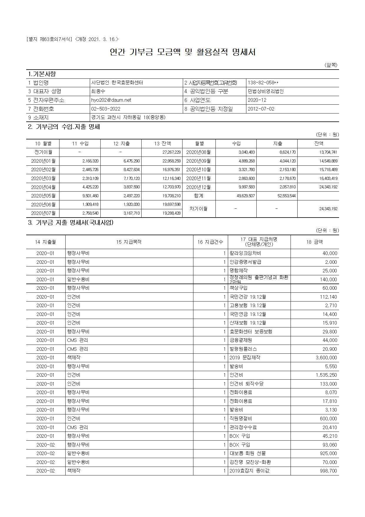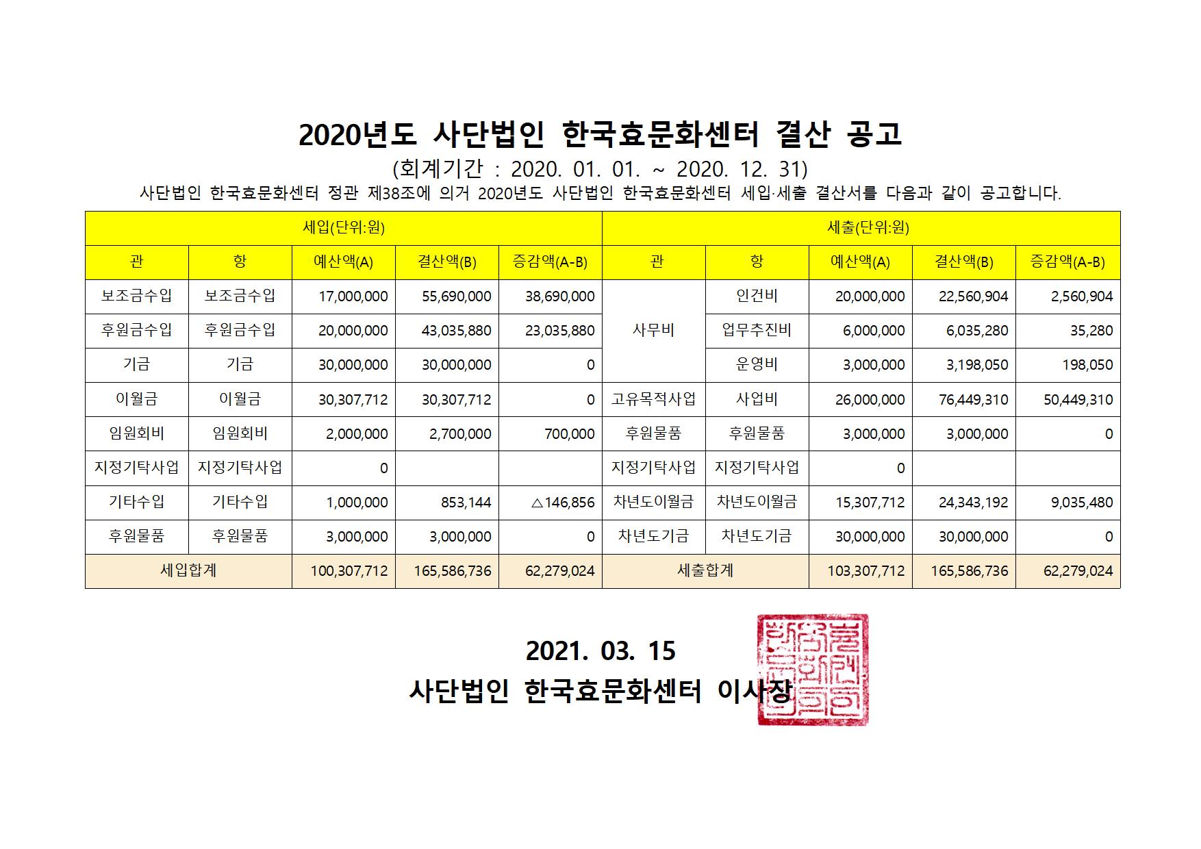 2020³âµµ °á»ê¼ ¹× ±âºÎ±Ý ¸ð±Ý¾×, Ȱ¿ë½ÇÀû¸í¼¼