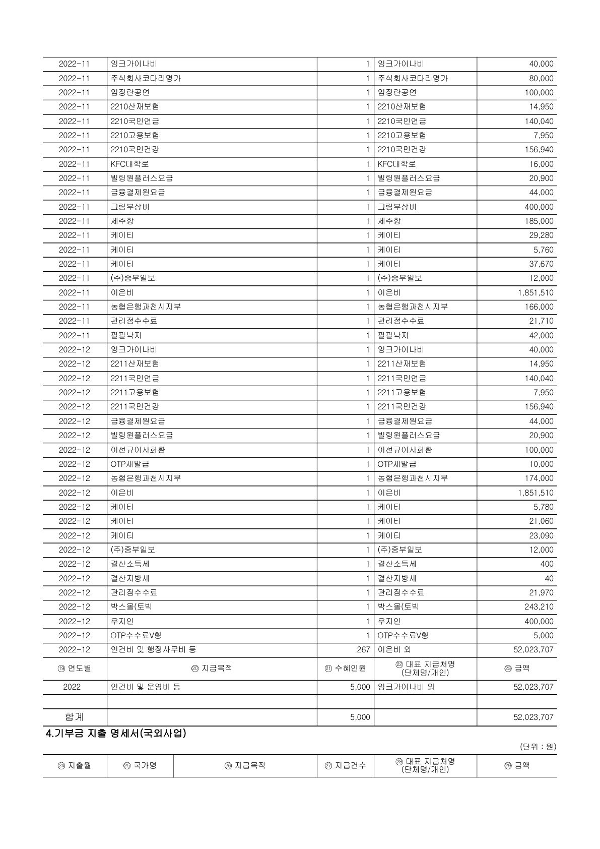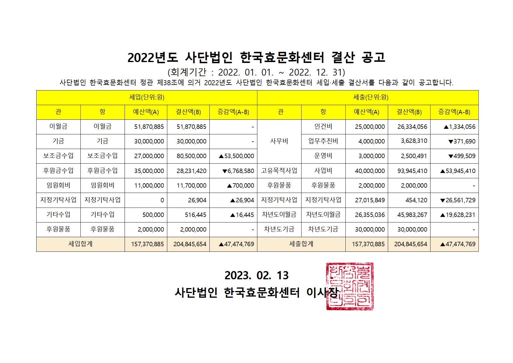 2022³âµµ °á»ê¼ ¹× ±âºÎ±Ý ¸ð±Ý¾×, Ȱ¿ë½ÇÀû¸í¼¼