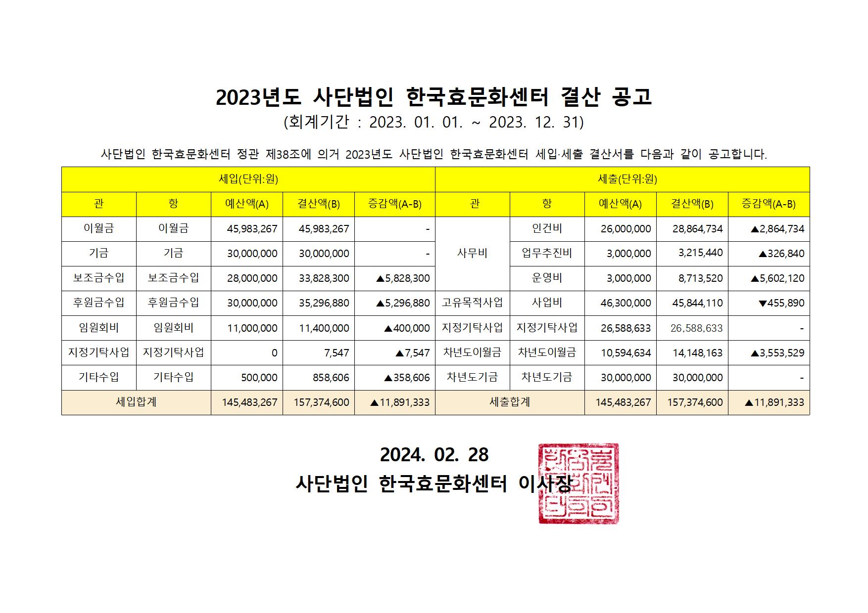 2023³âµµ °á»ê¼ ¹× ±âºÎ±Ý ¸ð±Ý¾×, Ȱ¿ë½ÇÀû¸í¼¼