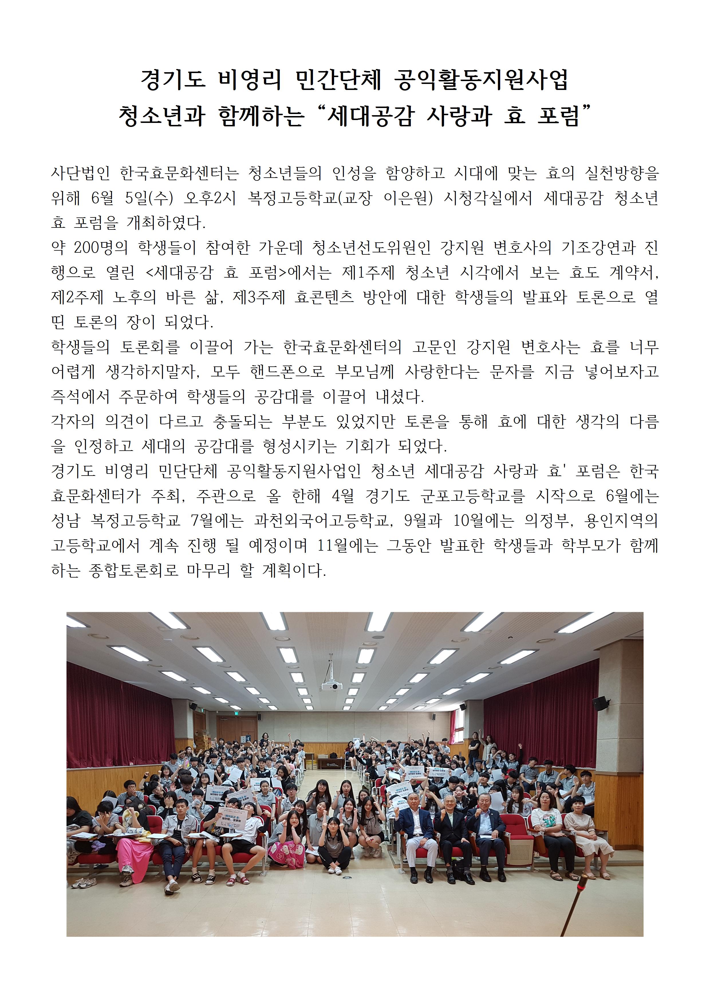 [È¿Æ÷·³]º¹Á¤°í û¼Ò³â°ú ÇÔ²²ÇÏ´Â ¡°¼¼´ë°ø°¨ »ç¶û°ú È¿ Æ÷·³¡±°æ±âµµºñ¿µ¸®¹Î°£´Üü°øÀÍȰµ¿Áö¿ø»ç¾÷