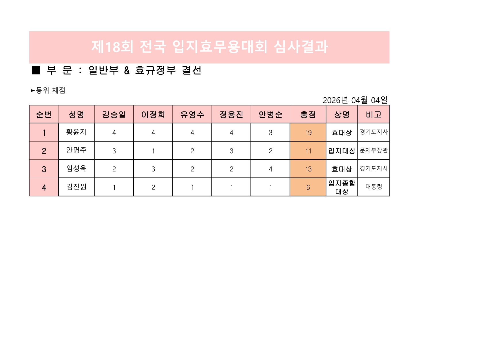 [¹ßÇ¥]Á¦18ȸ Àü±¹ ÀÔÁöÈ¿¹«¿ë´ëȸ È¿ ±ÔÁ¤ ´ëÇÐÀϹݺÎ&ÀϹݺΠ°á¼± ½É»ç°á°ú
