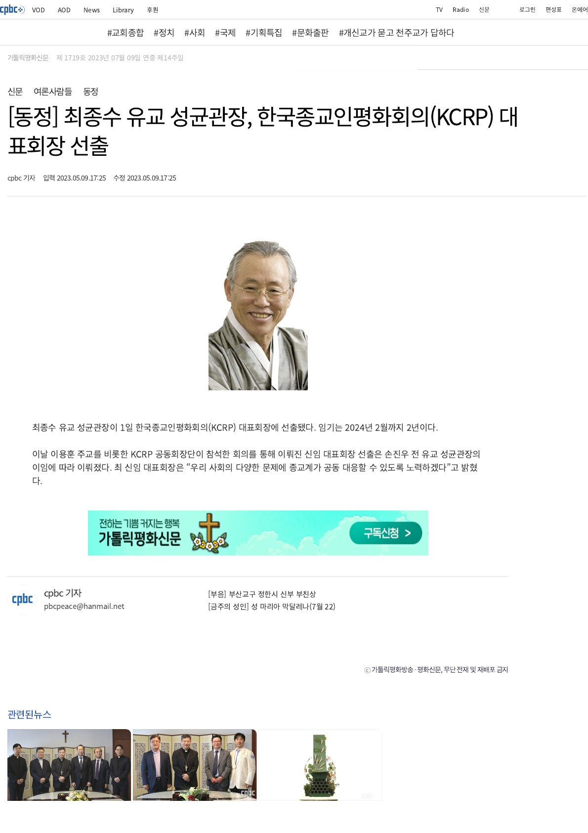 2023.05.09 °¡Å縯ÆòȽŹ®_ÃÖÁ¾¼ö À¯±³ ¼º±Õ°üÀå, Çѱ¹Á¾±³ÀÎÆòÈȸÀÇ(KCRP) ´ëǥȸÀå ¼±Ãâ