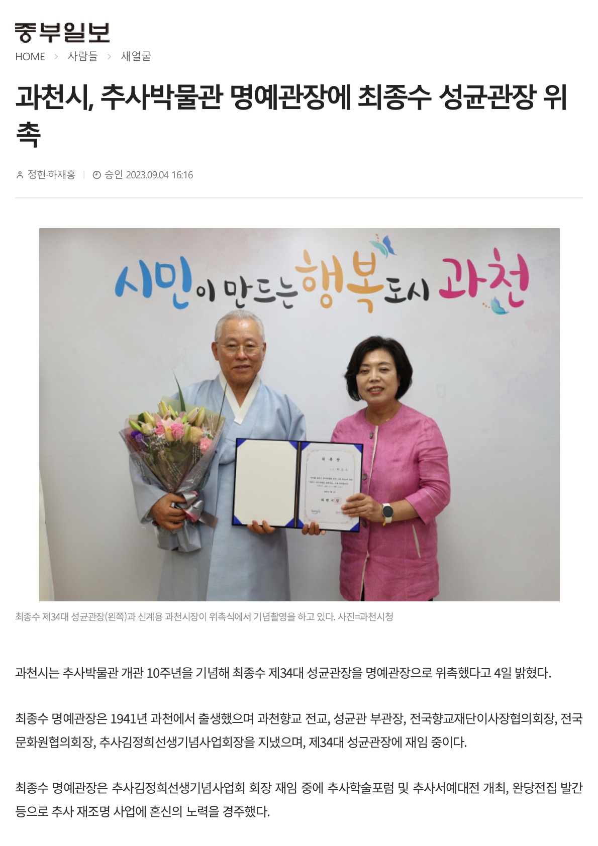 2023.09.04 ÁߺÎÀϺ¸_°úõ½Ã, Ãß»ç¹Ú¹°°ü ¸í¿¹°üÀå¿¡ ÃÖÁ¾¼ö ¼º±Õ°üÀå À§ÃË