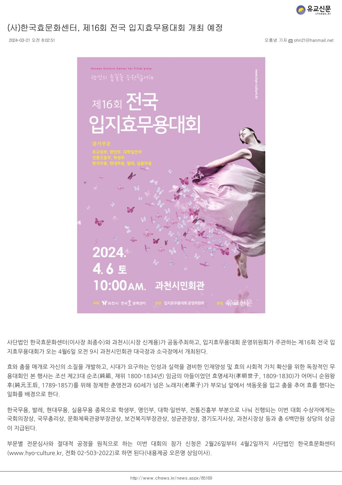 2024-03-21[À¯±³½Å¹®](»ç)Çѱ¹È¿¹®È¼¾ÅÍ, Á¦16ȸ Àü±¹ ÀÔÁöÈ¿¹«¿ë´ëȸ °³ÃÖ ¿¹Á¤